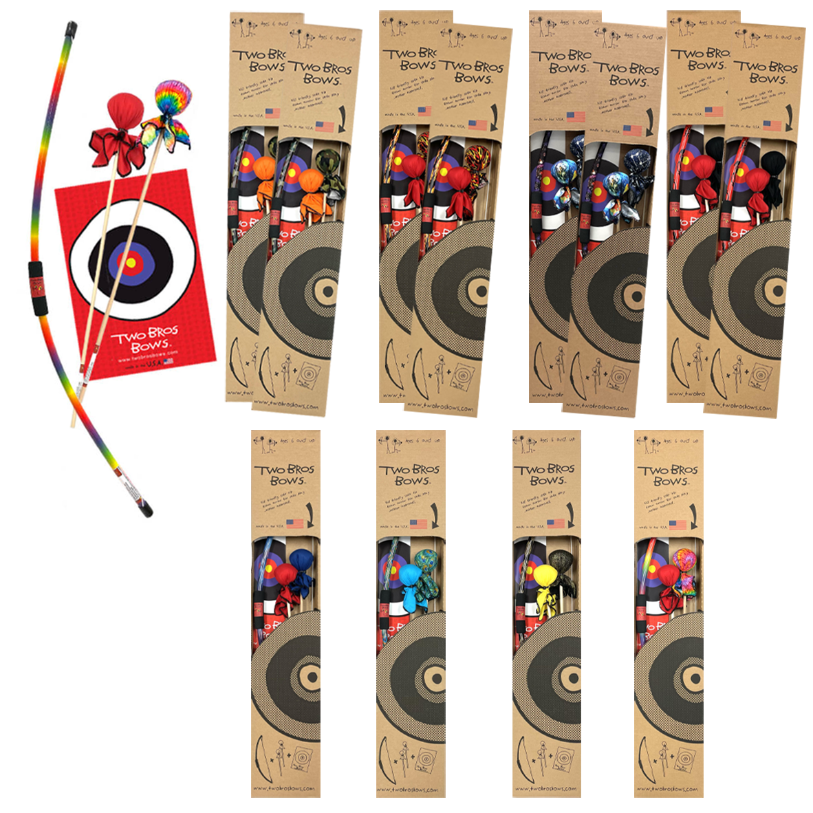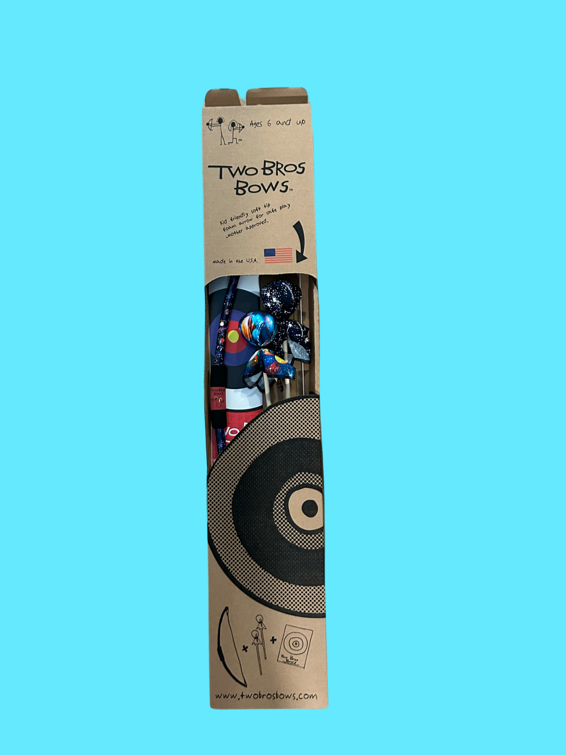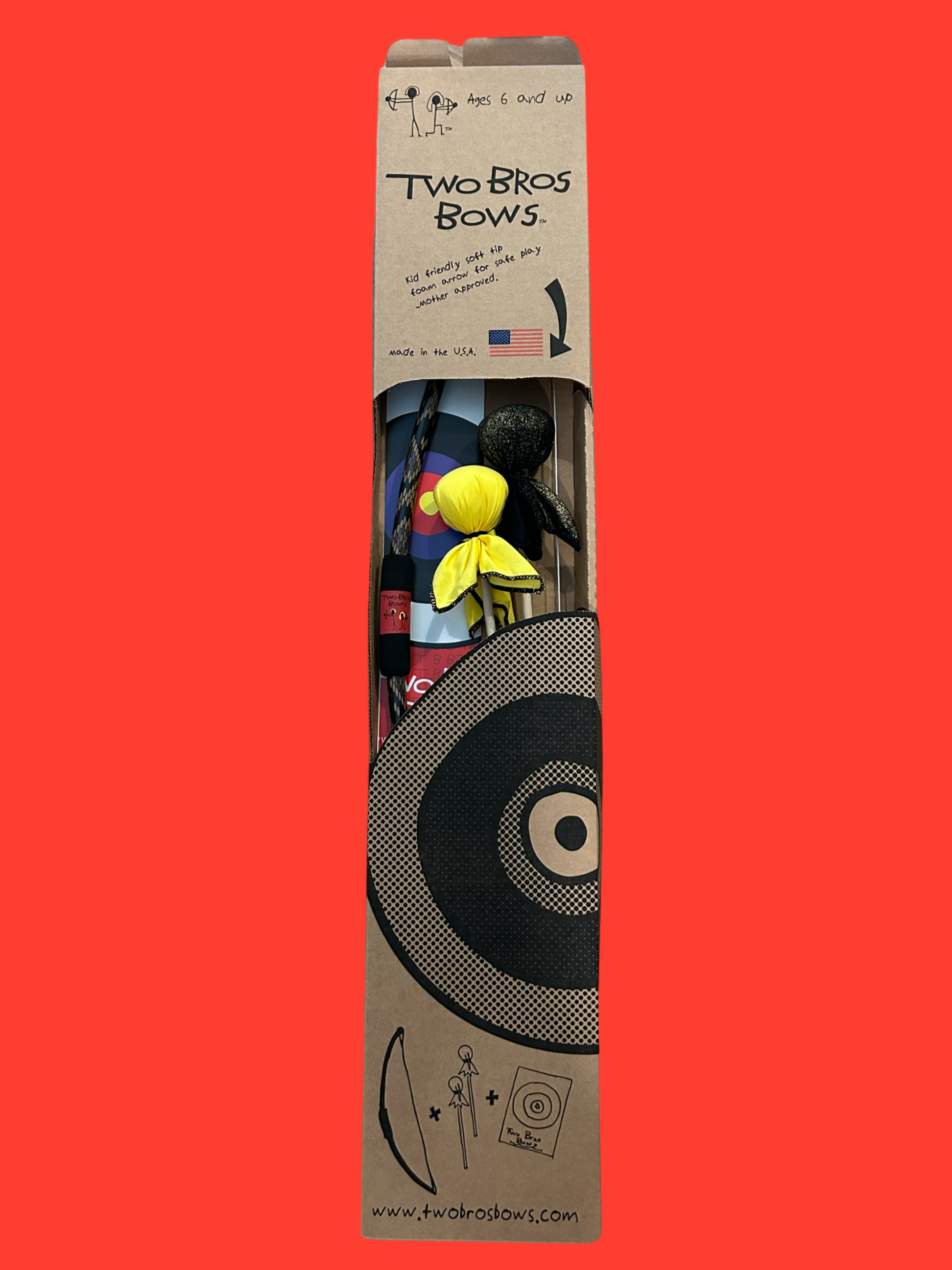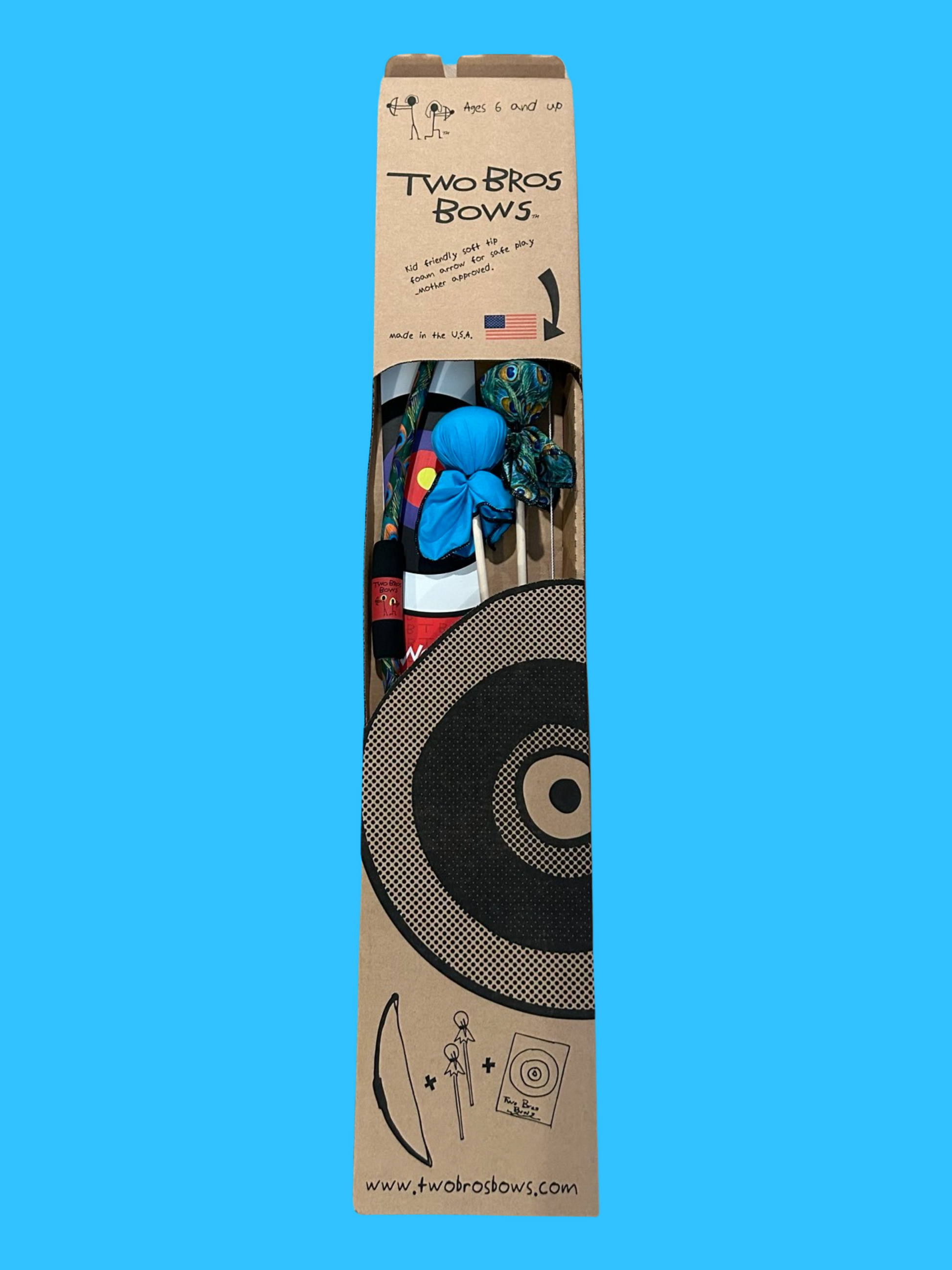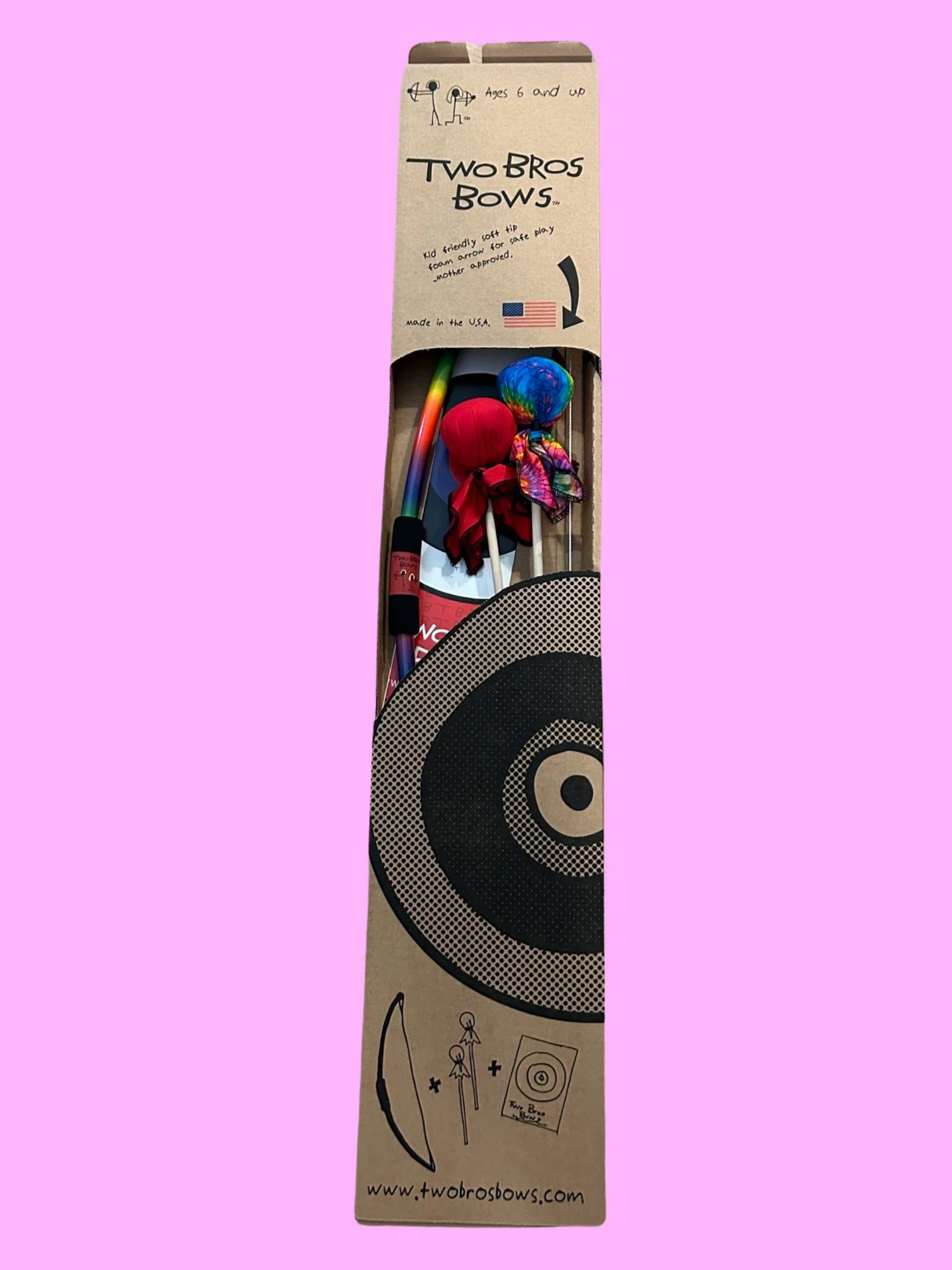 Discover the fun of archery with TWO BRO'S BOWS! Soft, cotton-covered foam tips make them safe for everyone—from the littlest sharpshooter to the oldest target-master!